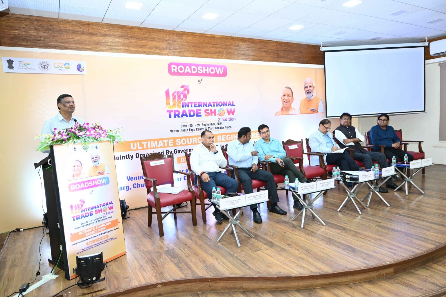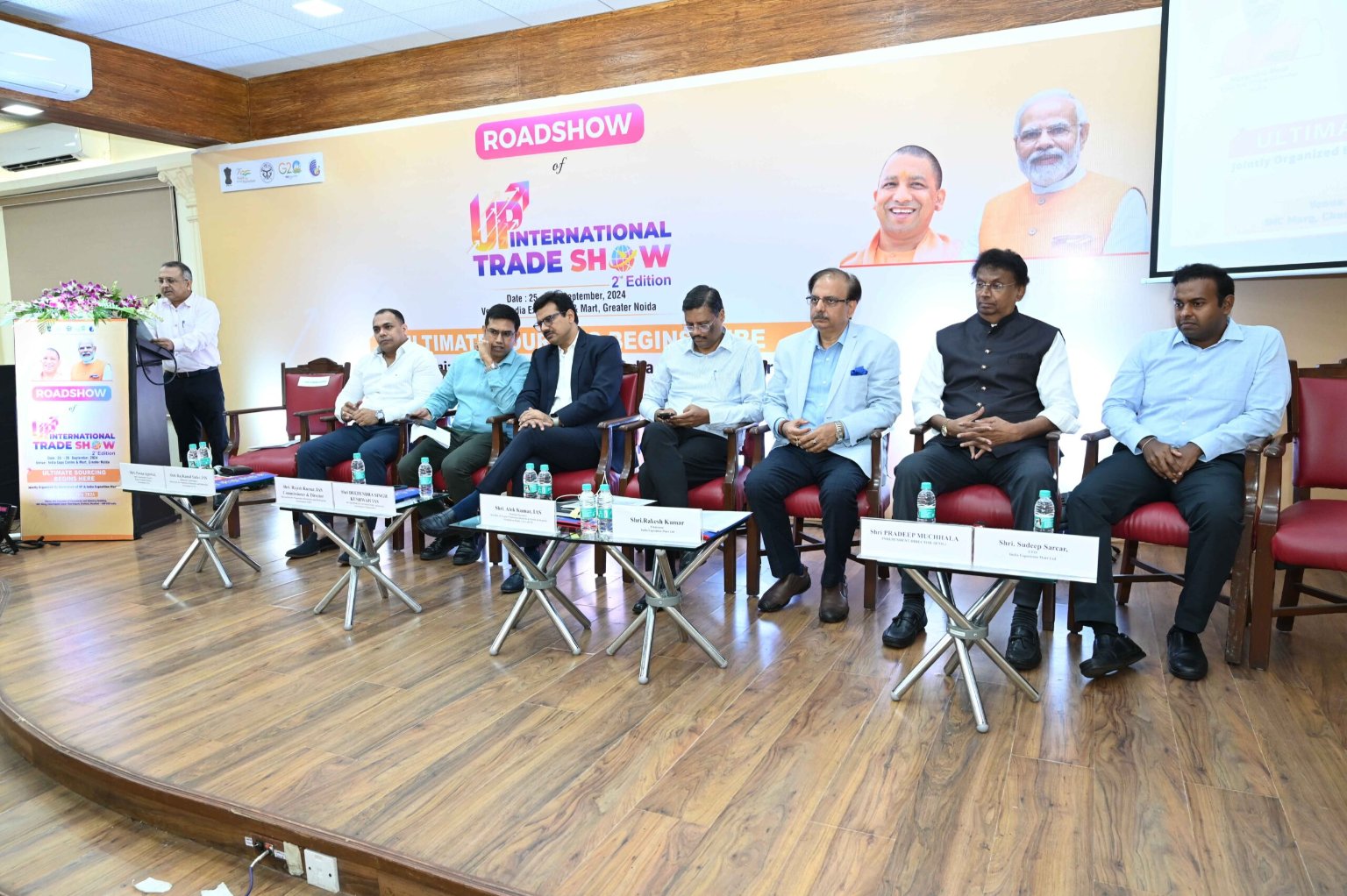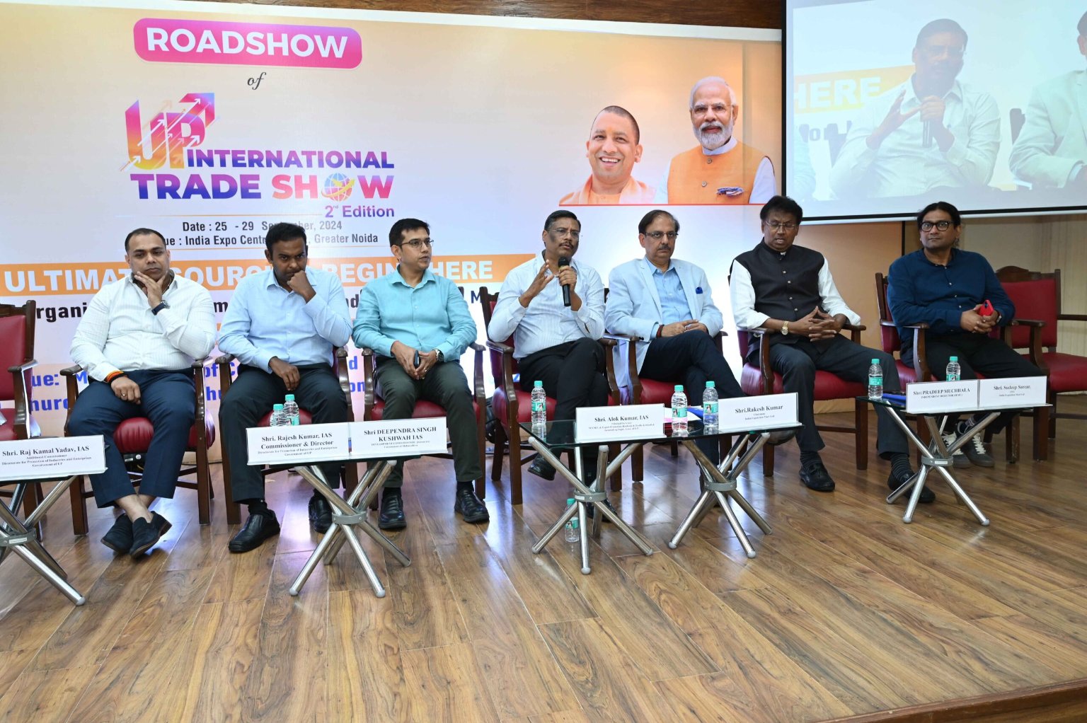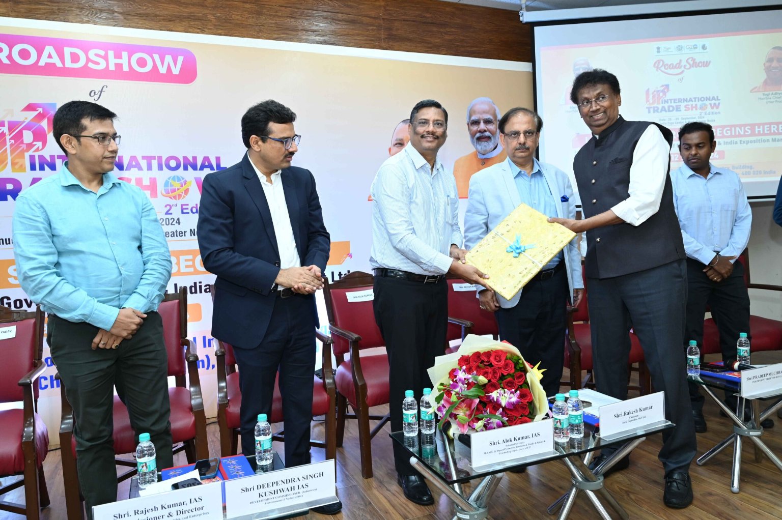 A press meeting was addressed by Hon’ble Shri Alok Kumar, Principal Secretary Department of M.S.M.E. & Export Promotion; Shri Pawan Aggarwal, Joint Commissioner Exports, Uttar Pradesh Export Promotion Council, Govt. of U.P; Sh. Rajesh Kumar, Commissioner & Director, Directorate for Promotion of Industries and Enterprises, Government of UP and Sh. Rajkamal Yadav Additional Commissioner, Directorate for Promotion of Industries and Enterprises, Government of UP ahead of the Road Show to introduce the second edition of UP International Trade Show that is scheduled to be held from 25 – 29 September 2024 in the premises of India Expo Centre & Mart.